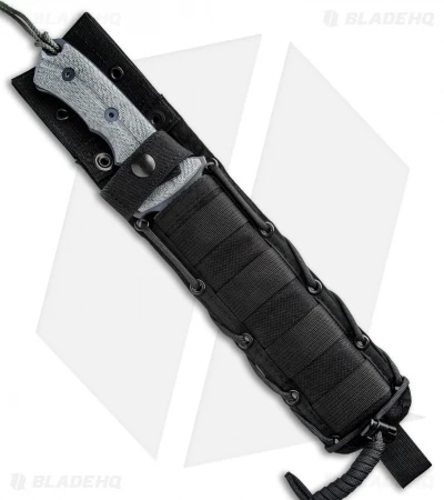 This Green Beret model sports a 7″ CPM S35VN stainless steel blade with a black finish and a partially serrated edge. It features full tang construction with black canvas Micarta handle scales. Item includes a high performance nylon sheath.