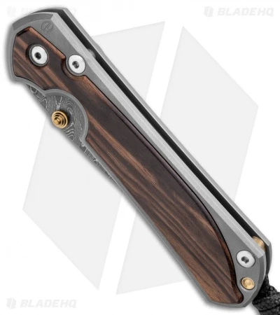 - Milled titanium handle scales with Macassar Ebony inlays.