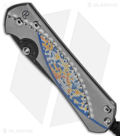 - Milled titanium handle scales with a unique graphic.