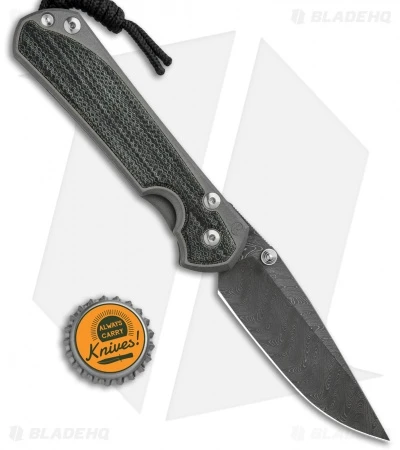 This left-hand Sebenza 31 model is built with a black canvas micarta handle and a Boomerang Damascus drop point blade.