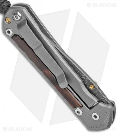 - Milled titanium handle scales with Macassar Ebony inlays.