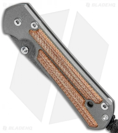 This Chris Reeve Small Sebenza 21 features a stainless Ladder Damascus blade and a bead blasted titanium handle with natural canvas Micarta inlays. The silver colored thumb stud and spacer give it a nice accent. Includes lanyard and titanium pocket clip. Made in the USA.
