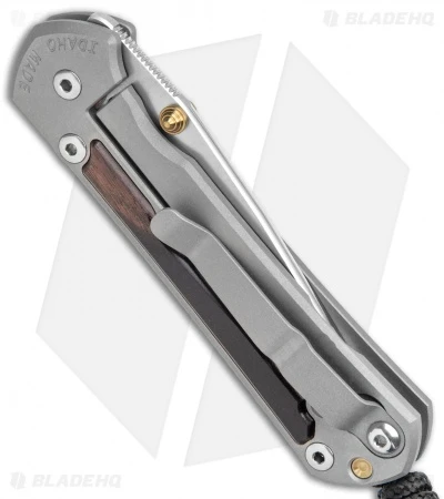 - Milled titanium handle scales with Macassar ebony inlays.